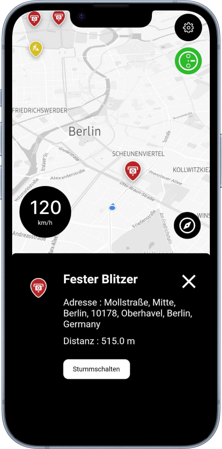 Drive One warnt Sie nur, wenn es Kontrollen und Ereignisse gibt, die wichtig sind. Dafür nutzen wir große Datenbanken sowie Echtzeitdaten von der Drive One Community.